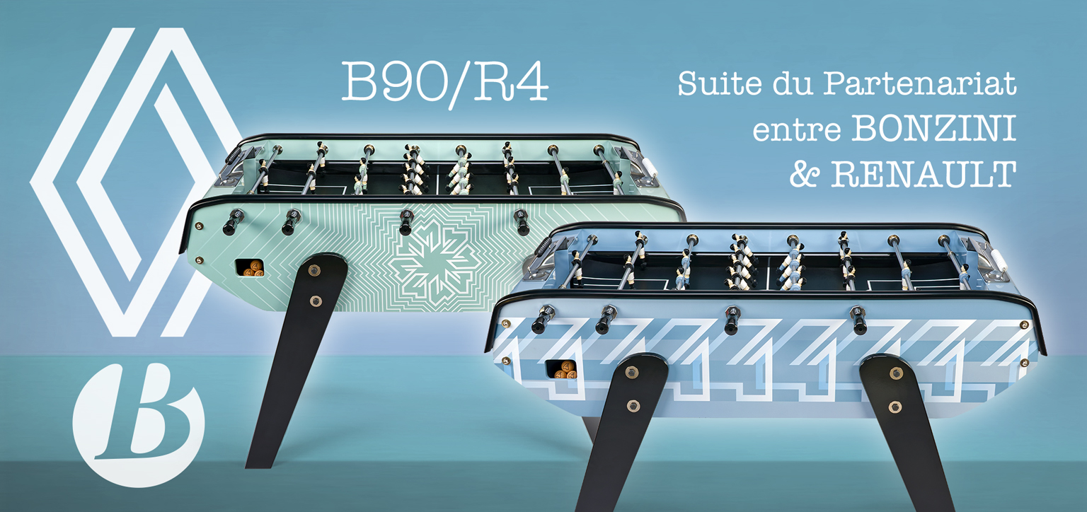 Après le succès du modèle B90 / R5, Bonzini et Renault prolongent leur partenariat avec deux nouveaux babyfoots B90 / R4 dédiés à la nouvelle Renault 4 E-Tech. Ce modèle a été spécialement conçu pour célébrer la sortie du « reboot » de ce véhicule emblématique, symbole d’aventure et d’innovation.