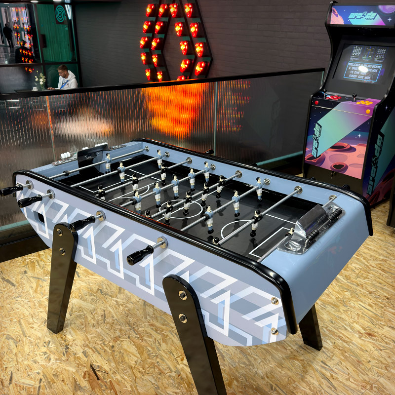 Inspiré par le design rétro-futuriste de cette nouvelle R4, ces 2 babyfoots arborent des couleurs toutes en nuances de bleu ciel et de vert clair, évocation de la nature et de la modernité, dans un style intemporel.