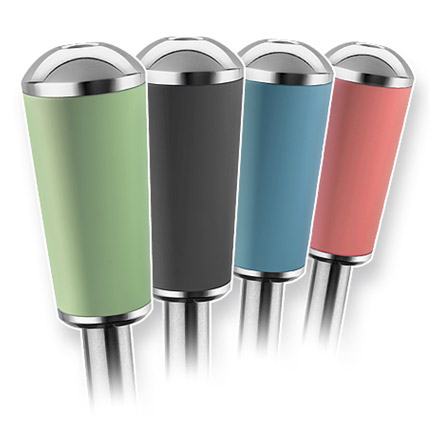 Bonzini propone ahora la empuñadura larga en versión bimaterial compuesta de aluminio y silicona, en cuatro colores.