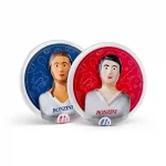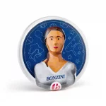 Four-colour printed on metal, this badge features the portrait of one of our iconic players from the ‘Mesdames Messieurs’ collection