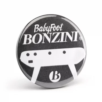 Printed in four-colour process on metal, this badge features the Bonzini logo with a B90 profile on a grey background.