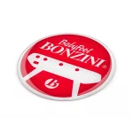 Imprimé en quadrichromie sur une feuille de vinyle et recouvert d'un dôme de résine en polyuréthane transparente, ce sticker affiche le logo Bonzini et le profil du B90 sur fond rouge.