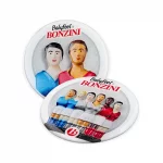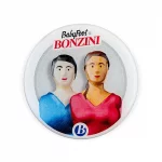Imprimé en quadrichromie sur une feuille de vinyle et recouvert d'un dôme de résine en polyuréthane transparente, ce sticker présente un duo de joueur.se.s emblématiques de la collection « Mesdames Messieurs ».